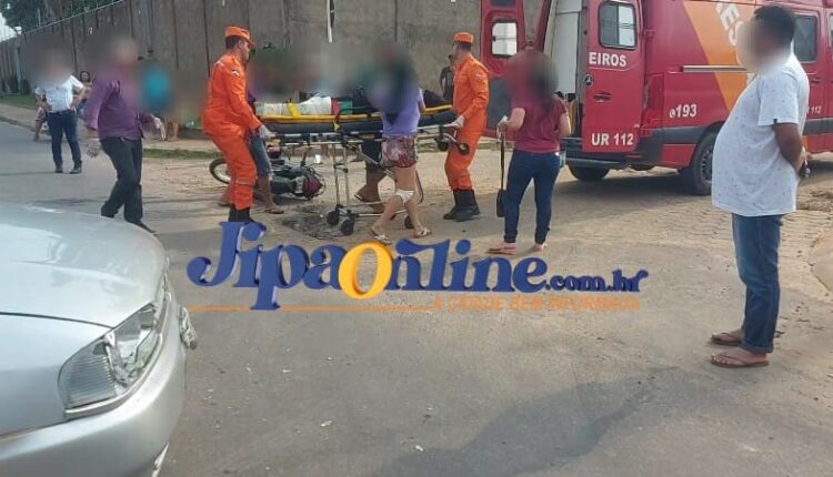 O grave acidente aconteceu na tarde desta terça-feira (07), na rua E com a T-20, bairro Mário Andreazza. De acordo com informações, um veículo Vw Gol foi fazer uma manobra saindo de um comércio na referida T-20 com rua E, neste momento uma mulher e uma motocicleta que seguia pela T-20 não percebeu a manobra e acabou colidindo fortemente contra a parte frontal do carro. Com o impacto da batida, a condutora da motocicleta foi arremessada ao solo atingindo a placa e farol do veículo, sofrendo um profundo corte na cabeça, perna, chegando a perder um chumaço de cabelos. O corpo de Bombeiros foi acionado, socorrendo a mulher desacordada com brevidade para o hospital municipal, onde deu entrada no pronto atendimento.