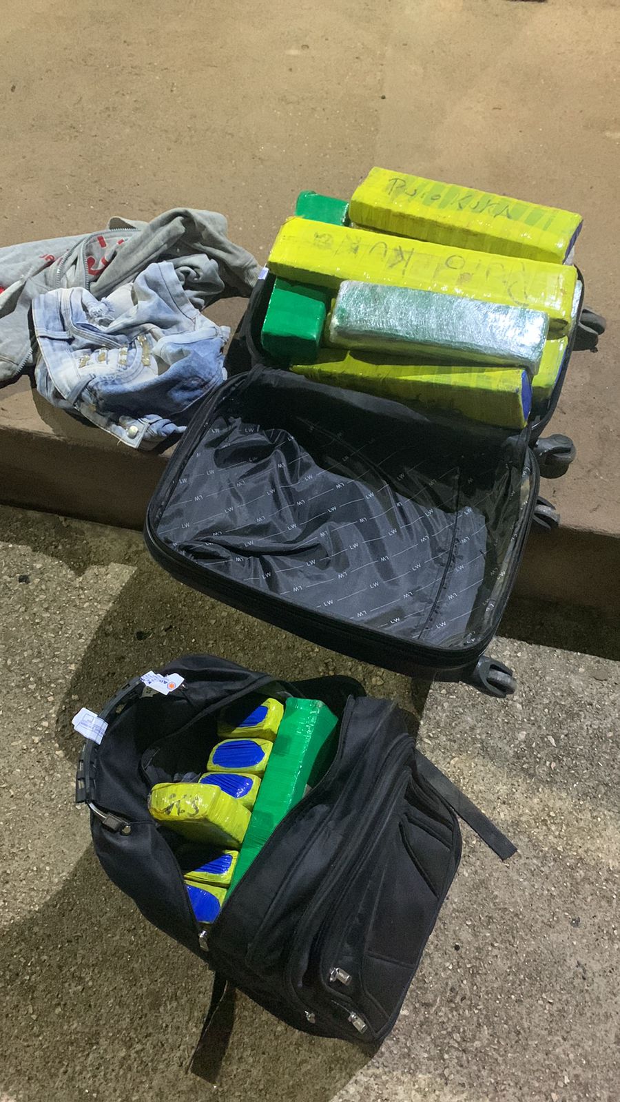 No total, 23 Kg da droga ilícita, que eram transportados na bagagem pessoal da infratora foram encontrados e encaminhados à Polícia Judiciária para destruição. A traficante também foi conduzida a Autoridade Policial, permanecendo à disposição do Poder Judiciário.