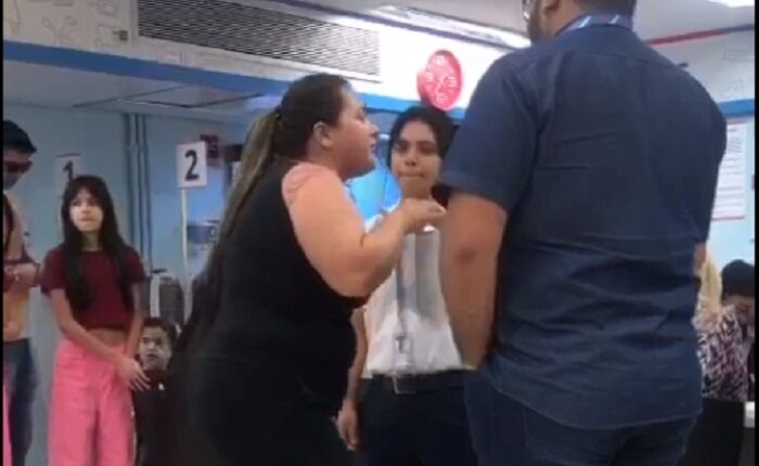 No vídeo, que já viralizou na internet, a esposa traída não poupa agressões verbais e também chama a funcionária de vagabunda e a acusa de trocar beijos com o marido “pegador” no banheiro da Bemol e durante o expediente da acusada.
