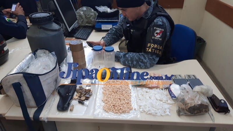 Ao verificar o conteúdo da bolsa arremessada pelo elemento, foram encontrados diversos indícios de tráfico de drogas. No interior da bolsa, foram localizadas cerca de mil pedras de crack prontas para venda, assim como aproximadamente 100 porções de cocaína e um pedaço de maconha, especificamente do tipo skank, com um peso total de 350 gramas. Além disso, uma balança de precisão e uma quantia em dinheiro no valor de mais de mil reais também foram apreendidas. Diante disso, o suspeito foi conduzido à Unidade Integrada de Segurança Pública para a adoção das providências legais cabíveis.