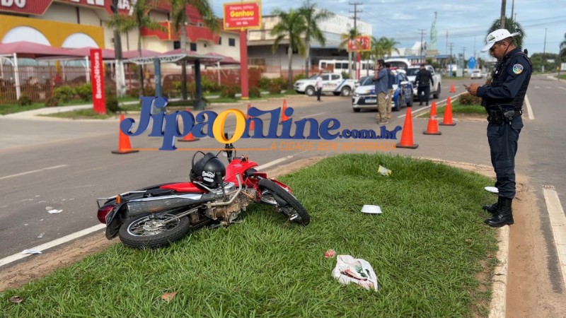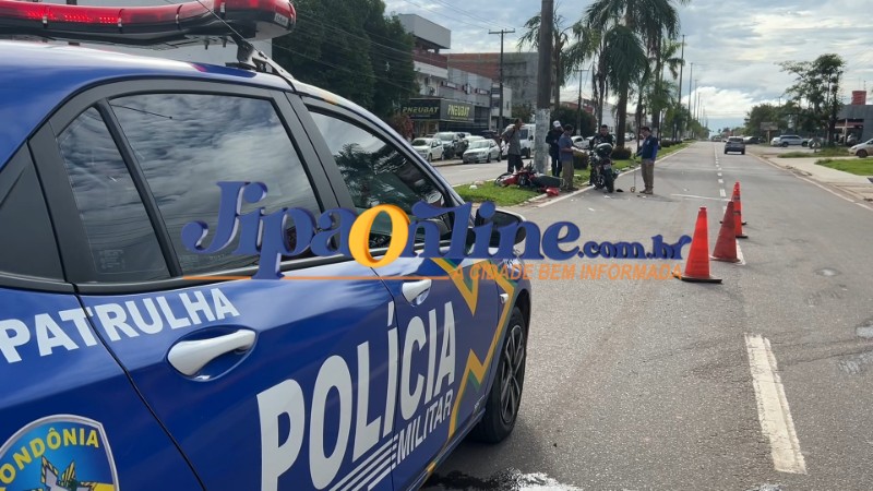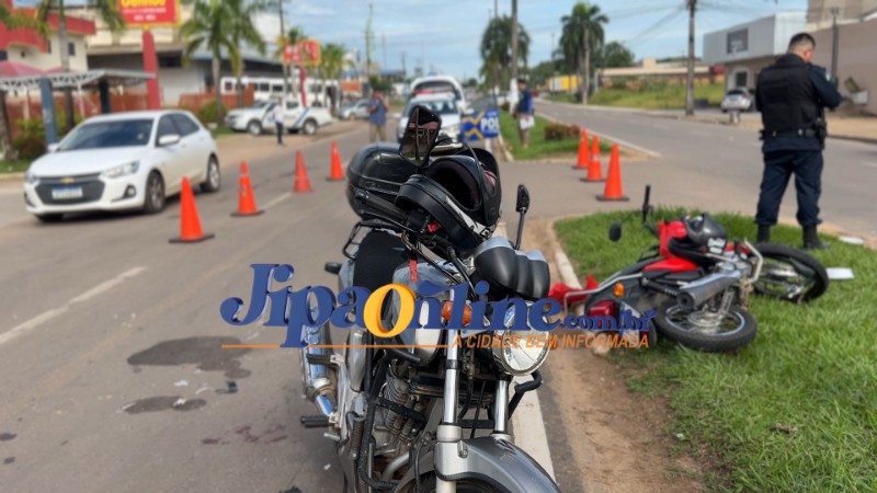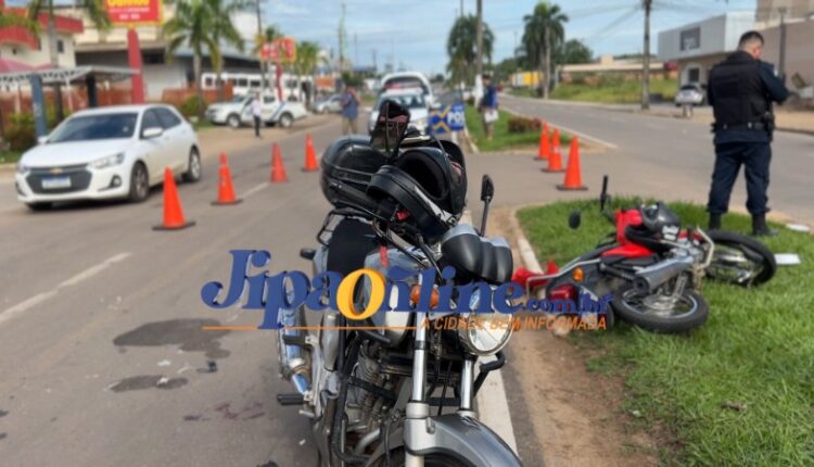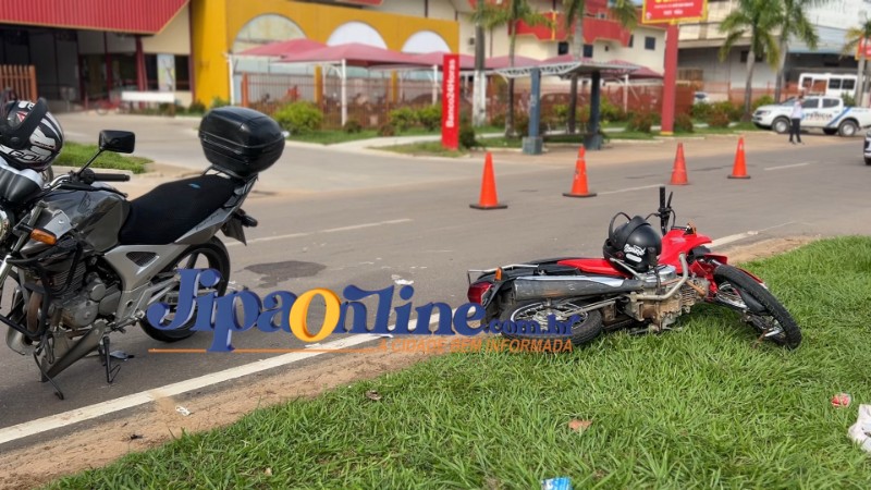 Um acidente de trânsito foi registrado na na Avenida Marechal Rondon, esquina com a Rua Dois de Abril, em frente a um mercado. De acordo com informações apuradas no local, uma motocicleta Honda Titan, de cor prata, saiu do estacionamento do mercado e acabou colidindo frontalmente com outra motocicleta que trafegava pela via.