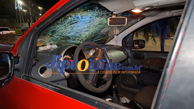 Segundo informações, o motorista do veículo freou bruscamente, deixando uma marca de frenagem de aproximadamente 70 metros até a parada total do veículo.