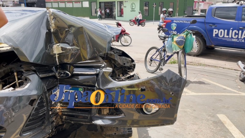 A colisao envolvendo uma motoneta Biz e um carro Ford Focus ocorreu na tarde desta quarta-feira (19), no cruzamento da Av. Maringá com a T-7. O momento exato da colisão foi registrado por câmeras de monitoramento, que mostram o Ford Focus tentando desviar da motoneta, que cruzava a Av. Maringá no sentido da Av. Brasil.