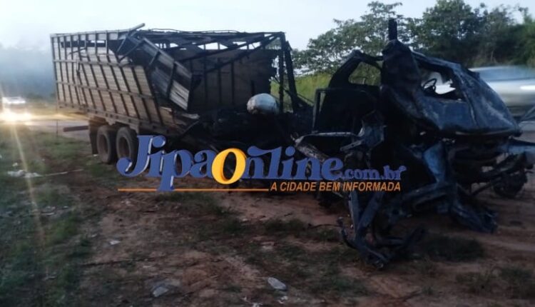 O trágico acidente que envolveu três caminhões na noite desta quarta-feira (31), na altura do km-437, há cerca de 10 km de Jaru, sentido Ariquemes, vitimou dois condutores que tiveram seus corpos prensados nas ferragens e carbonizados. O gado que estavam em um dos caminhões envolvidos, também morreram, e outros foram soltos na pista.