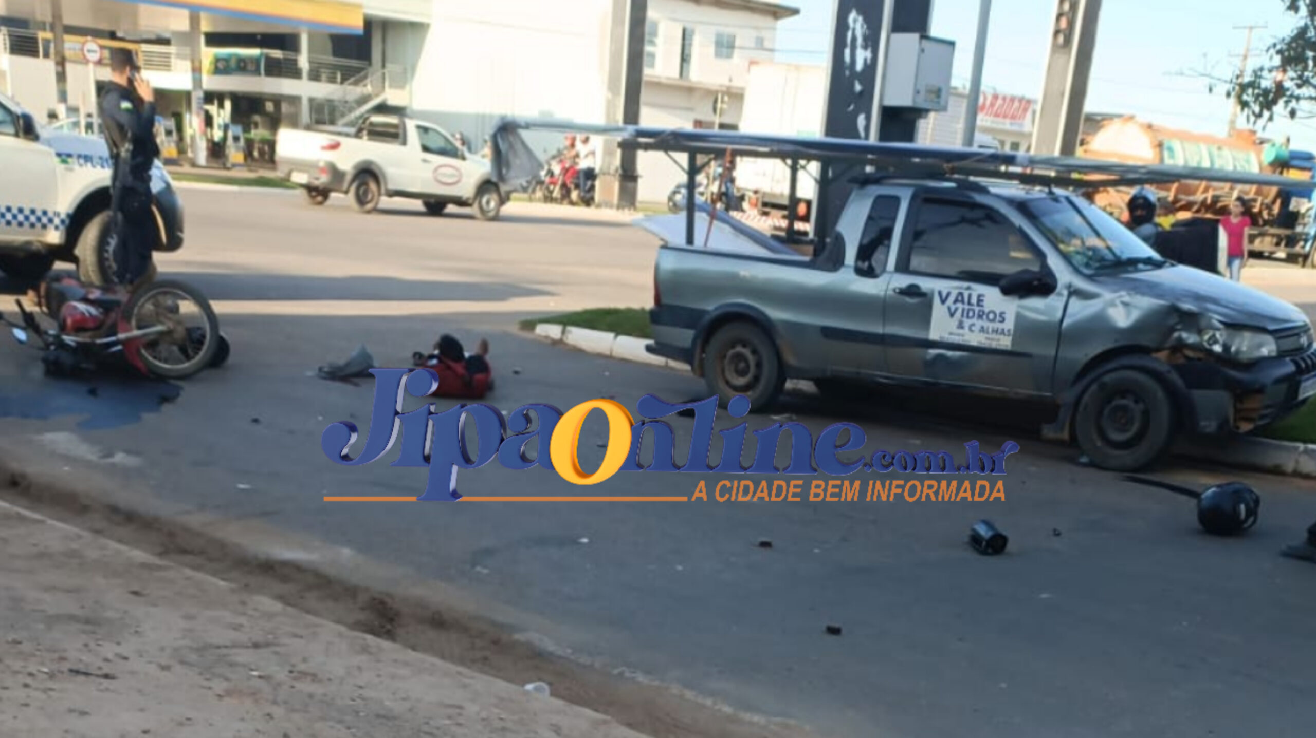 A Polícia Militar registrou mais um acidente de trânsito em Ji-Paraná. Dessa vez no cruzamento da Av Menezes Filho com a marginal da BR-364 no primeiro distrito da Cidade envolvendo um veículo Strada e uma motocicleta Yamaha. O condutor da motocicleta Yamaha seguia pela marginal sentido ao centro. Já o condutor do veículo Fiat Strada estava na outra marginal sentido Ouro Preto do Oeste. Quando o sinal abril o motorista da Strada realizou uma manobra a esquerda cruzando as duas faixas principais da BR-364 provocado o acidente. Após a colisão os ocupantes da motocicleta caíram ao solo sofrendo várias lesões, posteriormente foram socorridos ao HM pelo corpo de bombeiros para atendimento emergencial