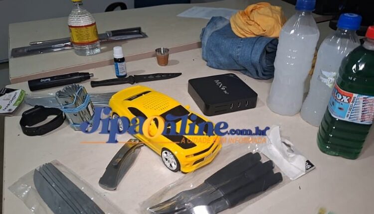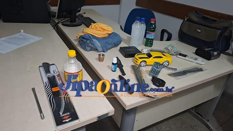 Com o elemento foi encontrada uma faca, no blister ainda, lacrada, uma bomba que ele já havia tirado o blister, uma bomba de tereré, e um corote de pinga, objetos que ele havia furtado no local. Já na bolsa que estava com ele, foram encontrados vários objetos, uma caixinha de som nova, várias dobradiças, jogos de faca, de cozinha, de talher, umas 12 facas, alguns garfos, canivete, alguns objetos pequenos. Diante dos fatos, o elemento foi detido e levado para UNISP. Na delegacia, o homem ainda informou o nome errado aos PMs na tentativa de dificultar o trabalho da polícia. A ocorrência foi registrada e o caso repassado à polícia civil.