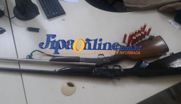 Na tarde desta quarta-feira (26) a PATAMO prendeu um indivíduo e apreendeu duas armas de fogo. A equipe estava em patrulhamento pela L-98 travessão com linha 128 quando foi avistado um veículo modelo HB-20 suspeito. Os policiais deram ordem de parada ao condutor do veículo, e ao ser feito a checagem, foi localizado no porta malas do carro duas espingardas calibre 32 e cerca de 14 munições intactas. Um assumiu a propriedade das armas e disseram estar indo caçar.
