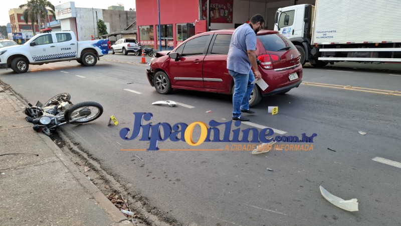 O acidente que envolveu um veículo modelo Citroën c 3 e uma motocicleta Honda aconteceu no final da tarde desta quinta-feira, dia 26 de setembro no cruzamento da AV. Maringá com T-15 no bairro nova Brasília, segundo distrito da cidade de Ji-Paraná. Segundo informações repassadas pela polícia militar o condutor que dirigia o veículo modelo Citroën c 3 trafegava pelo Maringá sentido a T-1, e ao se aproximar do cruzamento com T-15 foi surpreendido o pelo condutor da motocicleta modelo Honda de cor preta que avançou a preferencial ocasionando a colisão. Após a batida o motociclista foi lançado e caiu ao solo cerca de 10 m de distância do ponto da batida a motocicleta lixou no asfalto por cerca de 15 m.