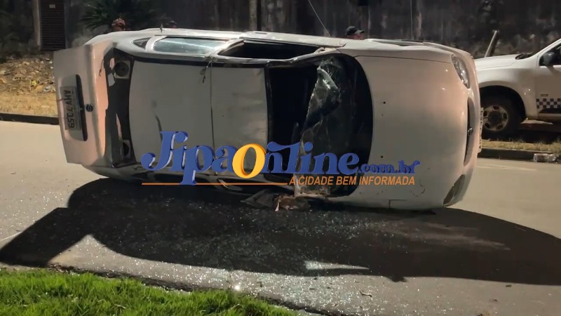 Colisão entre veículos causa capotamento e deixa uma pessoa ferida.
