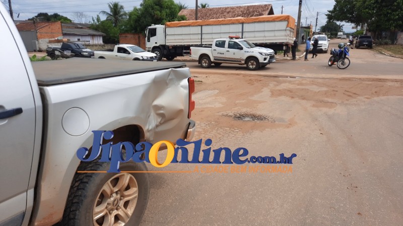 O acidente que envolveu uma caminhonete modelo S-10 e uma motocicleta Yamaha Lander de cor azul aconteceu por volta das 10h00 da manhã desta segunda-feira, 08/04, no segundo distrito da cidade de Ji-Paraná. Segundo informações o condutor da caminhonete modelo S-10 seguia pela T-5 sentido à Av. Brasil, o condutor da motocicleta Lander seguia pela k-5 sentido a T-4 e no cruzamento ocorreu a colisão. O motociclista colidiu na caçamba da caminhonete do lado esquerdo, após a batida ele caiu ao solo sofrendo escoriações e uma possível lesão em um dos braços. O jovem foi socorrido pela equipe do corpo de bombeiros a UPA para receber atendimento médico. A equipe da PETRAN foi acionada e compareceu ao local para registro de ocorrência.