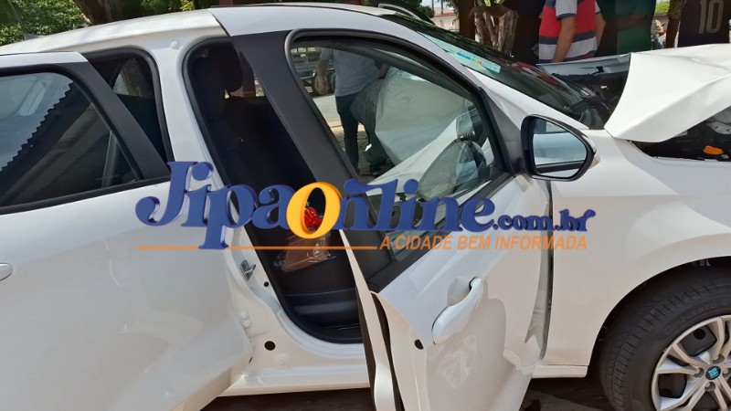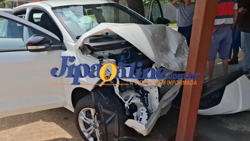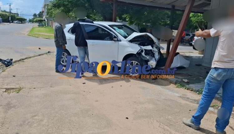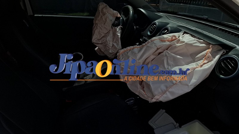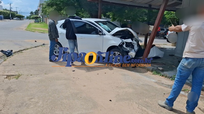 Com o impacto, o Fiat Argo perdeu o controle, subiu a calçada e colidiu violentamente contra um pilar de um comércio na esquina. A força da batida acionou os airbags dos dois veículos.