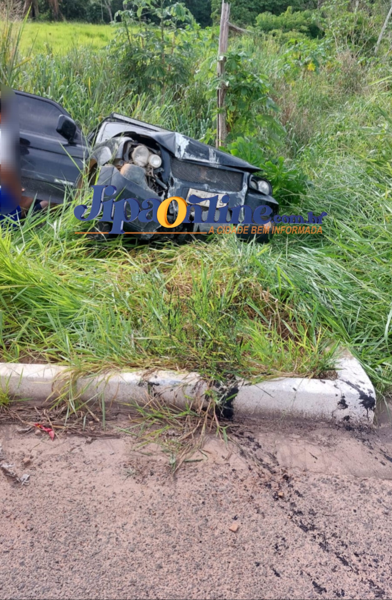 Condutor derruba poste, e capota caminhonete no parque Brasil em Ji-Paraná