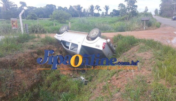 Um senhor conduzia uma Caminhonete Toyota Hilux pela referida via quando próximo ao frigorífico foi adentrar a uma estrada que dá acesso a uma propriedade e não fez uma abertura suficiente para fazer a curva e acabou caindo em uma vala.