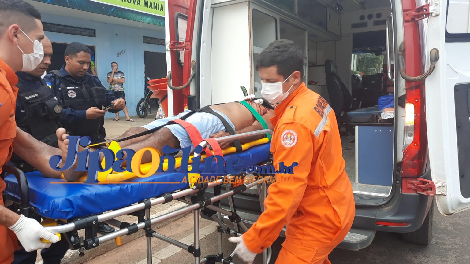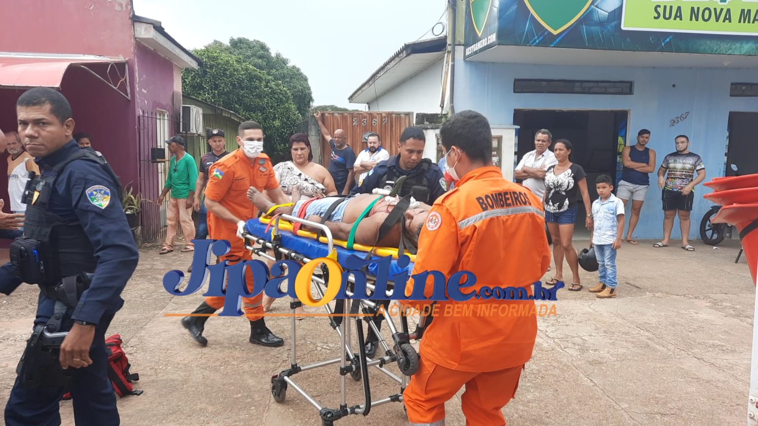 Um homem foi socorrido em estado gravíssimo pelo corpo de bombeiros e policiais militares às pressas para o hospital municipal de Ji-Paraná.
