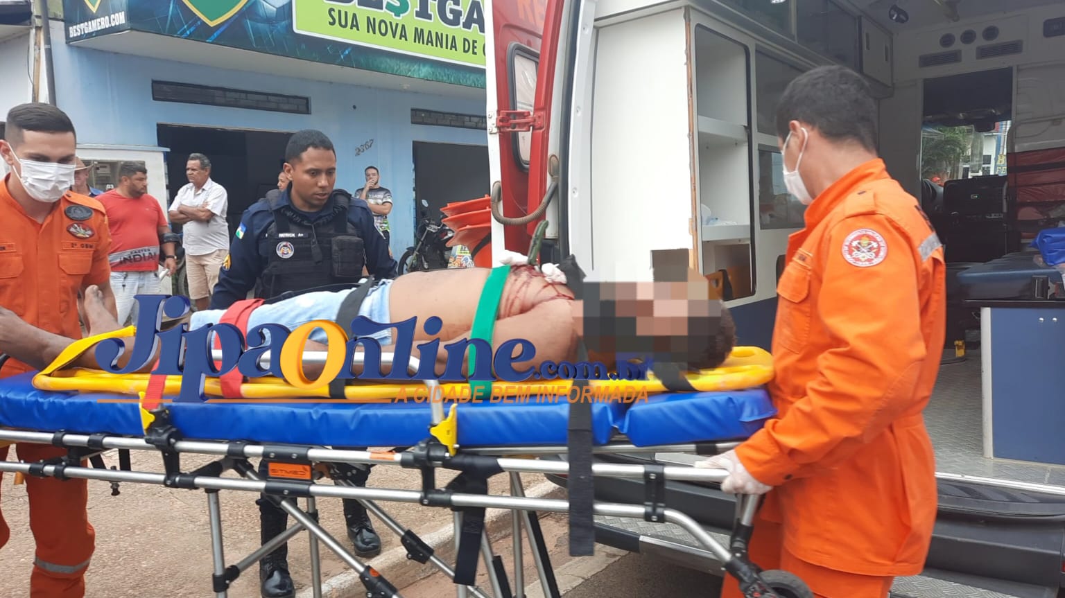 Um homem foi socorrido em estado gravíssimo pelo corpo de bombeiros e policiais militares às pressas para o hospital municipal de Ji-Paraná.