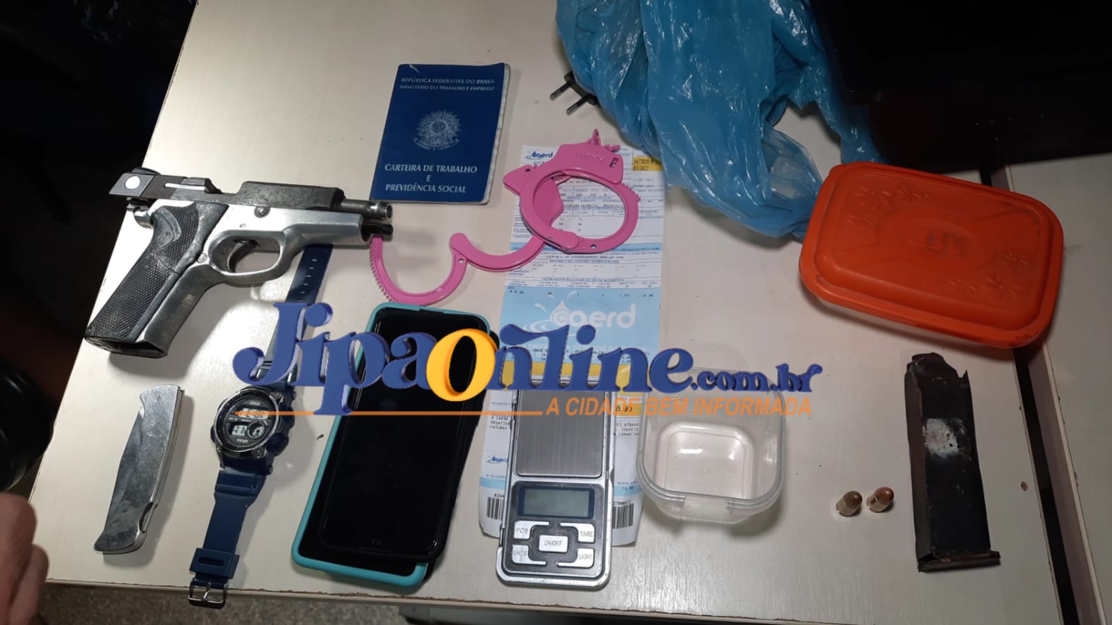 Na tarde deste sábado, dia 30, a Guarnição do Raio prendeu um homem que supostamente estava aterrorizando moradores com uma pistola. A prisão aconteceu no Residencial Rondon I, segundo Distrito de Ji-Paraná. O suspeito identificado Douglas, já possui passagens pela justiça. O conduzido relatou aos policiais que estaria guardando a arma para outra pessoa. Além da arma foram encontrados drogas, celulares e outros abjetos. O Sargento C. Augusto relata os fatos da ocorrência.
