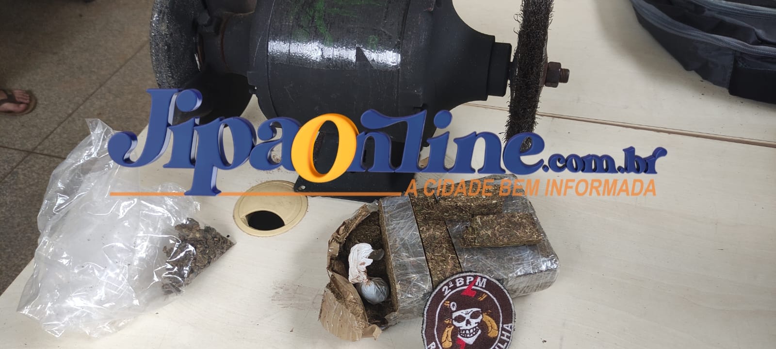 Por volta das 14:00 horas deste domingo (30), a guarnição do setor 05 composta pelo sargento Tramontina e soldado Rafael realizava patrulhamento pelo bairro Primavera, na rua Dr. Osvaldo, quando foi observado dois elementos em atitude suspeita na frente de uma casa, que ao avistarem a viatura, saíram correndo para o fundo do quintal, que é aberto, se embrenhando no meio da mata e brejo alagado. A guarnição solicitou apoio para realizar a captura dos elementos, não limitando esforços conseguiram capturar em meio a mata um dos agentes identificados como Claudemir Junges, com ele os policiais encontraram um saco plástico de cor transparente contendo aproximadamente 70% de uma barra de droga tipo maconha, 02 (dois) pedaços fracionados da maconha, 01 (uma) “peteca” de maconha e farelos da mesma droga, todos dentro do mesmo saco plástico, ao ser questionado sobre a droga Claudemir não se pronunciou. Com apoio das guarnições do setor 03 e setor 04 foi iniciada uma varredura no brejo onde foi localizado o segundo elemento, identificado como Humberto Rafael, que estava escondido agachado no meio da mata. Humberto relatou ter ido ao local para comprar droga e assim que chegou e desceu de sua bicicleta avistou a viatura saiu correndo, após Claudemir falar para ele correr, ao ser revistado foi localizado na bolsa de Humberto R$ 30,00 reais em espécie, um cadeado com chave, um isqueiro de cor vermelha, uma carteira de cigarro aberta e um pedaço de cigarro de maconha. No fundo do quintal onde os elementos correram havia dentro de um saco um esmeril de bancada. Diante da situação os agentes foram conduzidos a UNISP, junto com a droga e os objetos.