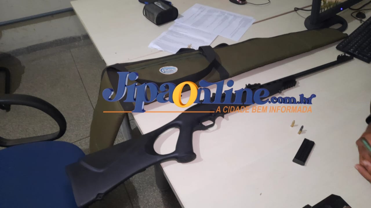 O atirador preso com um Rifle Cal. 22 com 127 munições.