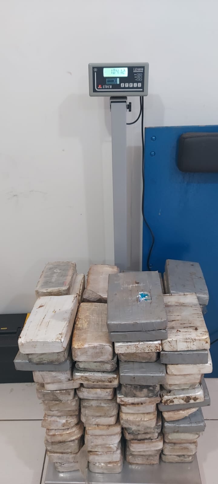 E no começo da manhã de domingo (08), outra de nossas equipes realizando atividade de enfrentamento ao tráfico de drogas em região de fronteira na BR 174, próximo ao km 25, no município de Vilhena, interceptou um carregamento de CLORIDRATO DE COCAÍNA sendo transportado por um homem de 34 anos que viajava sozinho em um veículo de passeio (Renault Logan). No total, 104,14 KG da droga ilícita, que eram transportados no porta-malas do veículo foram encontrados e encaminhados à Polícia Federal para destruição. O infrator foi conduzido e permanecerá à disposição da Justiça. Conforme estimativa do Departamento de Polícia Rodoviária Federal, o quilo da droga ilícita está avaliado em R$ 180.000,00. O prejuízo estimado aos criminosos é de R$ 19.510,200,00.