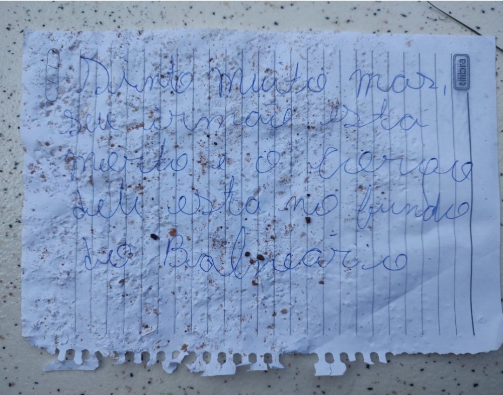 Ainda conforme relatos feitos à Polícia, a vítima teria dito a um familiar que estava sendo ameaçado e um bilhete (Foto abaixo) apontando o local onde estava o corpo de Roberto foi encontrado no quintal da irmã do homem morto. O corpo da vítima foi removido por uma funerária de Jaru e o caso deve ser investigado pela Polícia Civil do estado de Rondônia. O homem seria ex morador de Ji-Paraná.