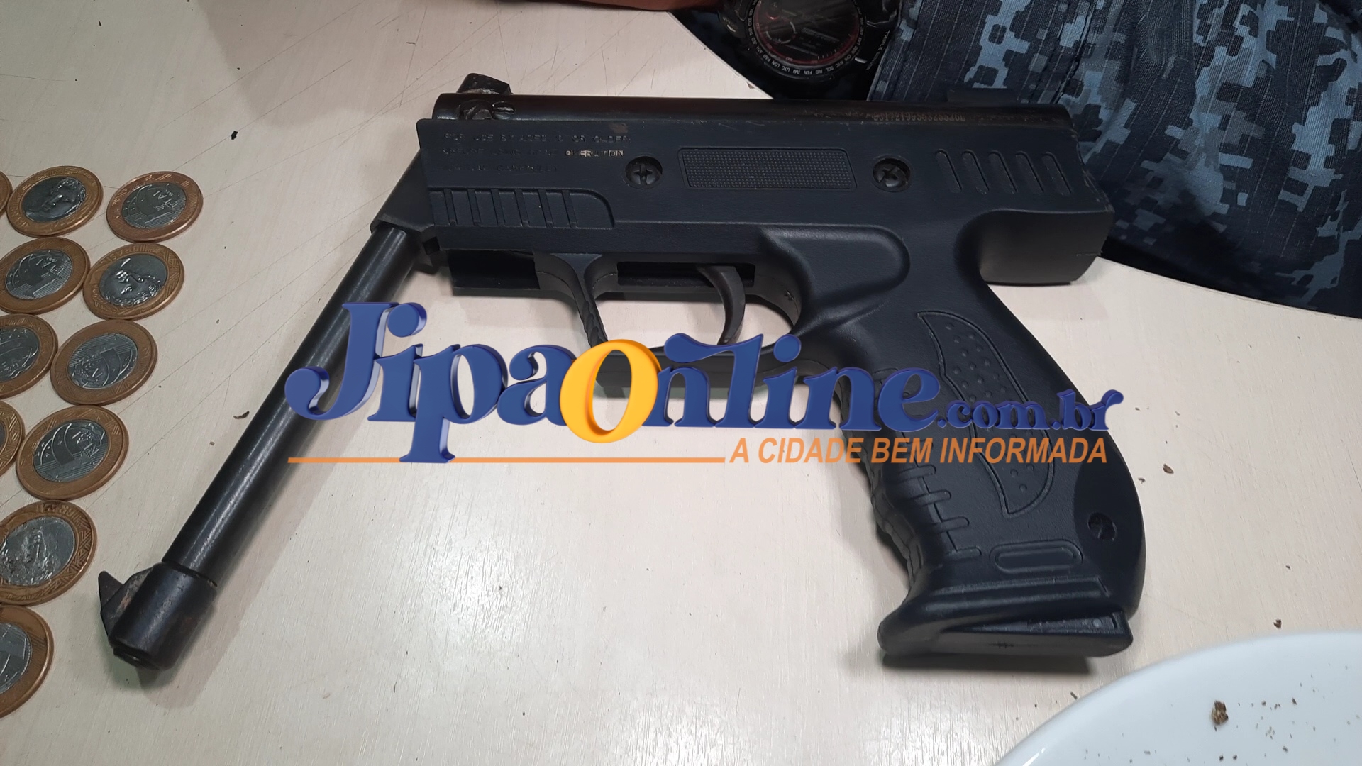 Após a confissão, os policiais seguiram com a dupla até a residência do casal, localizada na Rua Santa Izabel, atrás de uma creche municipal. Lá, foram encontrados uma pistola de pressão adaptada para o calibre 22, diversas munições do mesmo calibre, 300 gramas de maconha e uma quantia em dinheiro, além de uma caderneta usada para anotações da venda de drogas.