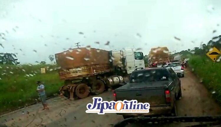 Final da tarde desta quinta-feira um acidente foi registrado pela PTRAN, na estrada do anel viário em Ji-Paraná. No local o condutor da carreta bitrem
