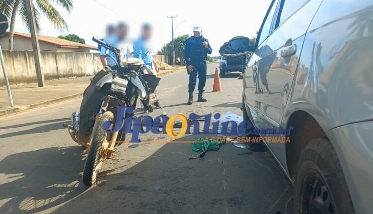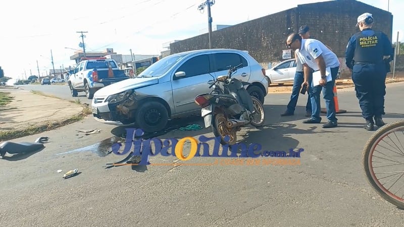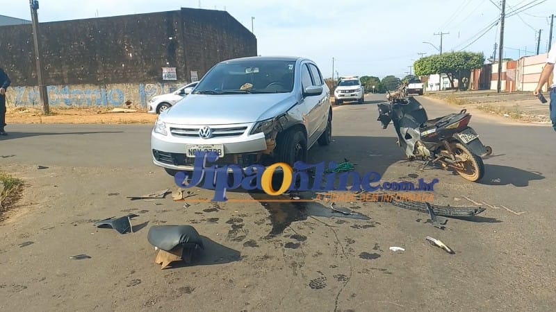 Na manhã desta terça-feira (04) a polícia foi acionada para atender uma ocorrência de acidente de trânsito na T-25 com rua São Paulo, bairro Nossa Senhora de Fátima. O condutor de um veículo Volkswagen Gol avançou a preferencial da via, e colidiu com a motocicleta ocupada por uma mulher que transitava pela rua São Paulo. A condutora da motocicleta, grávida, teve de ser socorrida às pressas com dores na barriga ao Hospital Municipal para atendimento médico emergencial. A polícia militar esteve no local para registro de ocorrência assim como a equipe da POLITEC para realizar os trabalhos periciais.