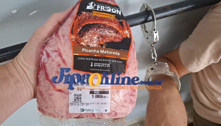 A Polícia Militar foi acionada para atender uma ocorrência de furto em um supermercado localizado na T-14, no segundo distrito de Ji-Paraná. Funcionários do estabelecimento flagraram um homem tentando furtar uma peça de picanha maturada do setor de carnes. Ao tentar sair do local sem efetuar o pagamento, o suspeito foi detido por funcionários, que conseguiram contê-lo até a chegada da guarnição da Polícia Militar. Em seguida, o homem foi conduzido ao UNISP para registro da ocorrência.