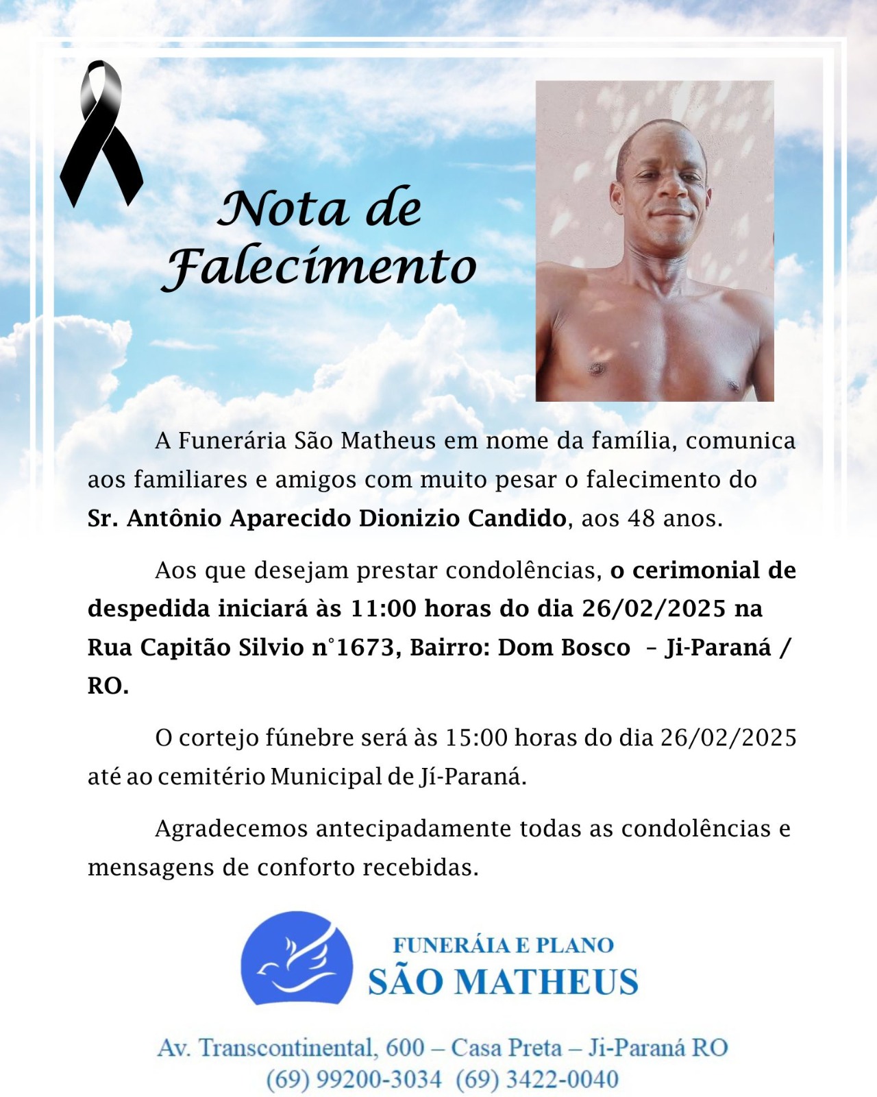 O homem foi identificado como Antônio Aparecido Dionísio Candido “vulgo Tibei” que teve aproximadamente 90% do corpo queimado após incendiar uma residência na noite da última sexta-feira, 21 de fevereiro, não resistiu aos ferimentos e acabou falecendo no hospital em Ji-Paraná. O caso aconteceu em uma residência na rua 13 de setembro, Bairro Presidencial 3. Tibei, como era conhecido, foi socorrido para o hospital municipal com aproximadamente 90% do corpo queimado. Segundo informações, Antônio estaria na casa com uma mulher e estavam discutindo. Após ela sair do imóvel, ele ateou fogo na casa e permaneceu no imóvel. Ao perceber que ia morrer carbonizado. Tibei saiu da casa com aproximadamente 90% do corpo queimado. Os bombeiros foram acionados e chegaram rapidamente ao local e conseguiram controlar o fogo, evitando que se alastrasse para outras casas próximas. No entanto, a residência foi completamente destruída pelo incêndio. Após quase uma semana, hospitalizado, Antônio Aparecido não resistiu aos ferimentos e faleceu durante a noite no hospital. O corpo está aos cuidados da funerária São Matheus, o cerimonial de despedida iniciará às 11 h do dia 26/02/2025 na Rua Capitão Silvio, n*1673, Bairro: Dom Bosco – Ji-Paraná–RO. Já o cortejo fúnebre será às 15 h do dia 26/02/2025, até o cemitério Municipal de Ji-Paraná.