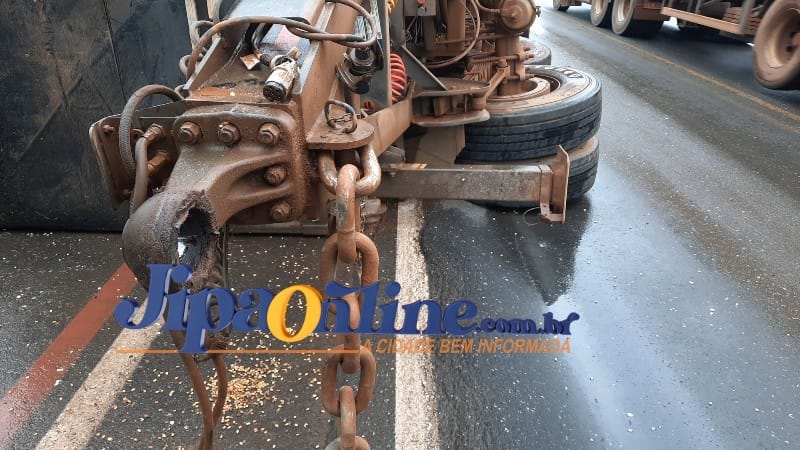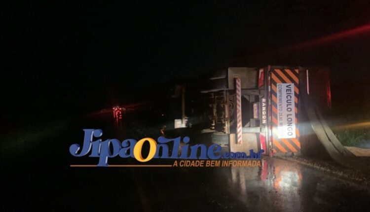 O acidente aconteceu por volta das 04h50 da madrugada deste sábado, 24/02, na estrada do Anel Viário sentido Porto Velho. O motorista relatou seguir sentido a Capital e cerca de 300 metros antes a primeira ponte do Rio Machado viu o animal, e ao tentar desviar com a carreta modelo Bitrem perdeu o controle da direção e o último vagão tombou na pista do lado direito da via sentido Porto Velho. Segundo o motorista do caminhão, ainda dois veículos que seguiam na via acabaram batendo no animal, mas ninguém se feriu só damos materiais. A polícia militar esteve no local para registro de ocorrência.