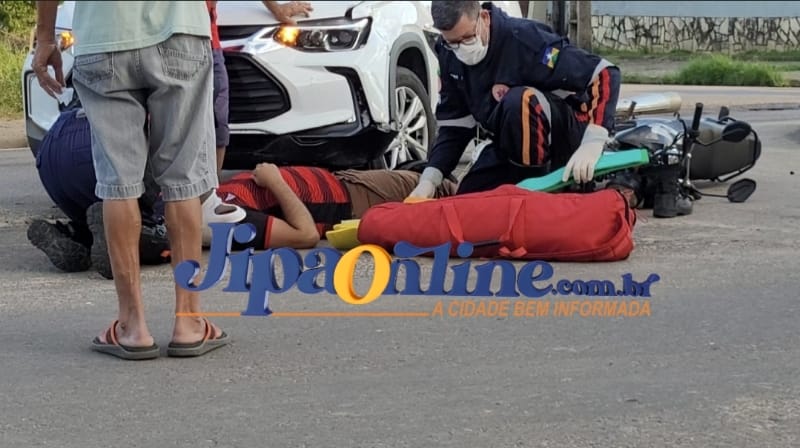 A colisão envolvendo uma motocicleta e um veículo modelo SUV aconteceu na rotatória da Fernandão, no bairro Dom Bosco, em Ji-Paraná. O motociclista, que seguia pela Av. Mato Grosso, entrou na rotatória com o carro e colidiu contra ele. O motociclista caiu e sofreu uma possível fratura na perna direita. Testemunhas e o motorista do carro prestaram socorro até a chegada da Polícia Militar e do SAMU. A vítima foi encaminhada ao Hospital Municipal para tratamento.