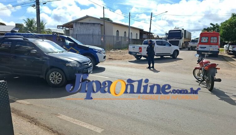 Um acidente envolvendo um veículo Fiat Strada e uma motocicleta de cor vermelha foi registrado na manhã desta sexta-feira (2), na interseção da rua T-14 com a rua Feijó, no bairro Cafezinho, segundo distrito de Ji-Paraná. De acordo com informações apuradas no local, o condutor do Fiat Strada estava estacionado e, ao tentar sair, não percebeu a aproximação da motocicleta que seguia pela T-14, sentido L-94. A condutora da moto acabou colidindo contra o pneu dianteiro esquerdo do automóvel e caiu ao solo. Na motocicleta estavam duas mulheres.