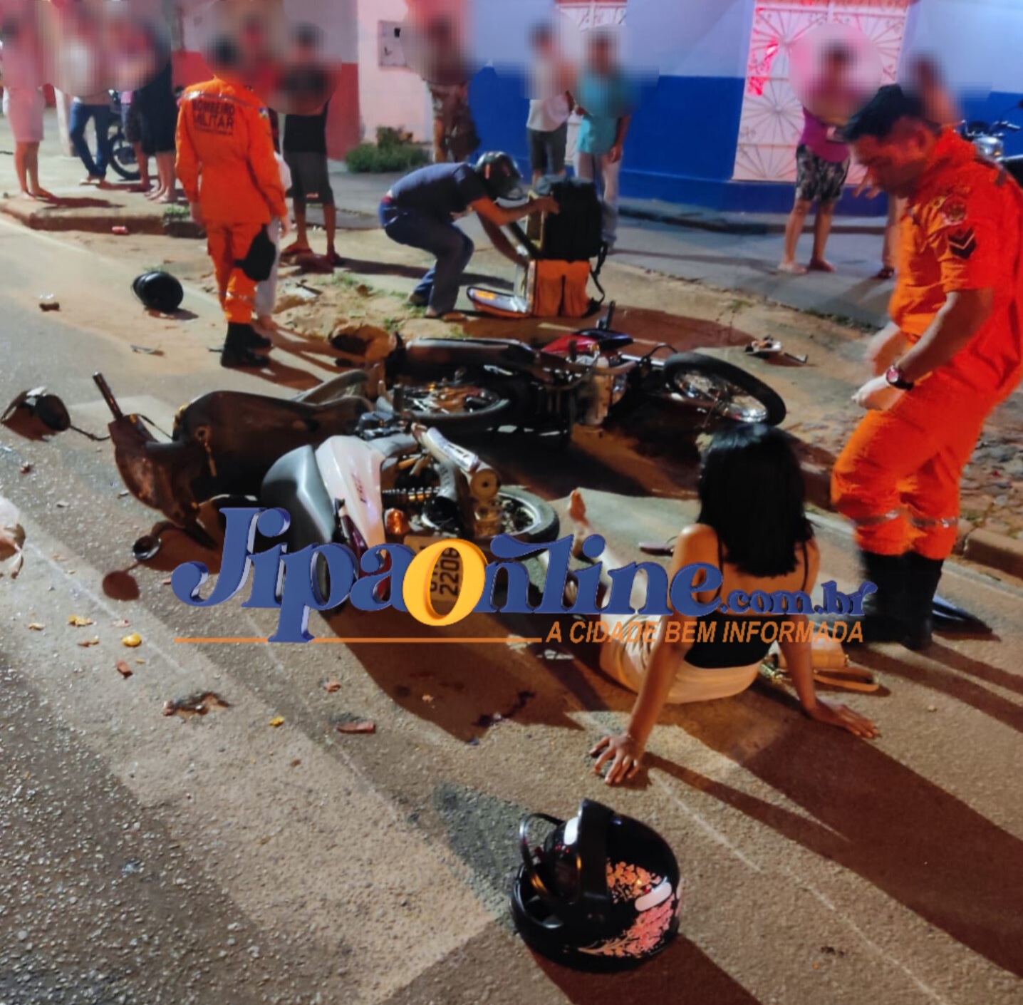 Ocorrendo a colisão entre as motocicletas, com a pancada os ocupantes caíram ao solo sofrendo escoriações pelo corpo. A jovem da Biz foi socorrida a UPA para atendimento médico, já o condutor da Fan recusou e permaneceu no local.