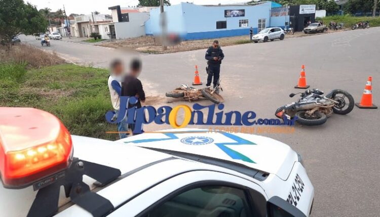 A colisão envolvendo duas motocicletas aconteceu no final da tarde desta segunda-feira, 01 de abril no cruzamento da Av. Mato Grosso com rua Dom Bosco, primeiro distrito da cidade, desde Ji-Paraná. Segundo informações o rapaz que conduzia a motocicleta Yamaha Fazer 250cc, seguia pela Mato Grosso sentido BR-364. Já o condutor da motocicleta Honda Bros seguia pela rua Dom Bosco saindo do HM, sentido Av. 6 de maio, e no cruzamento ocorreu a colisão.
