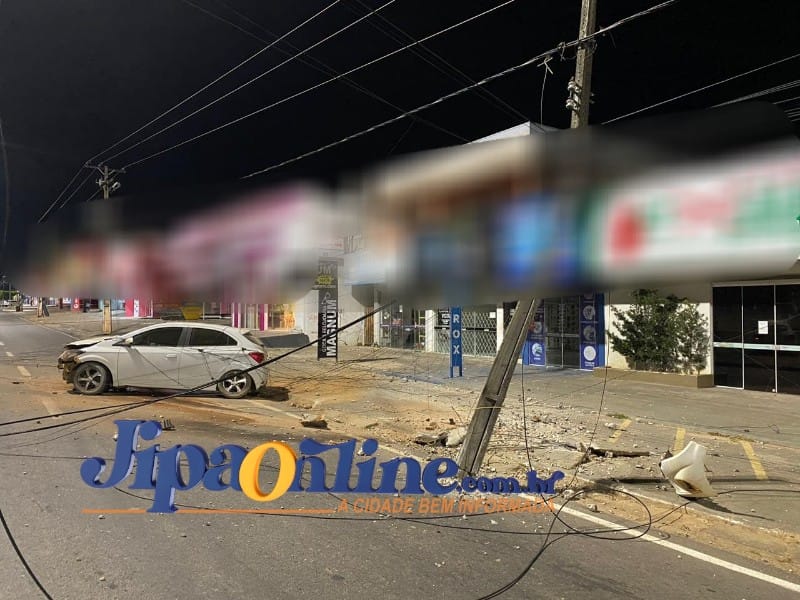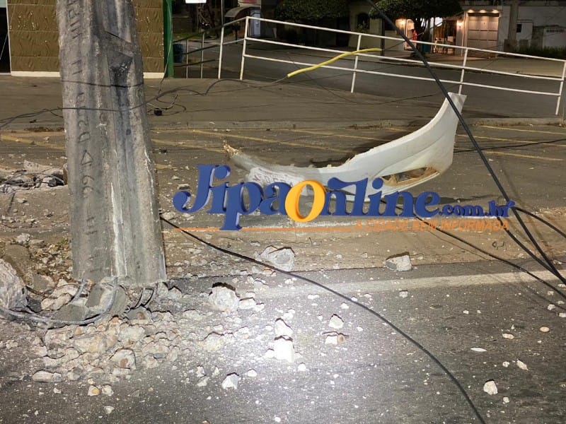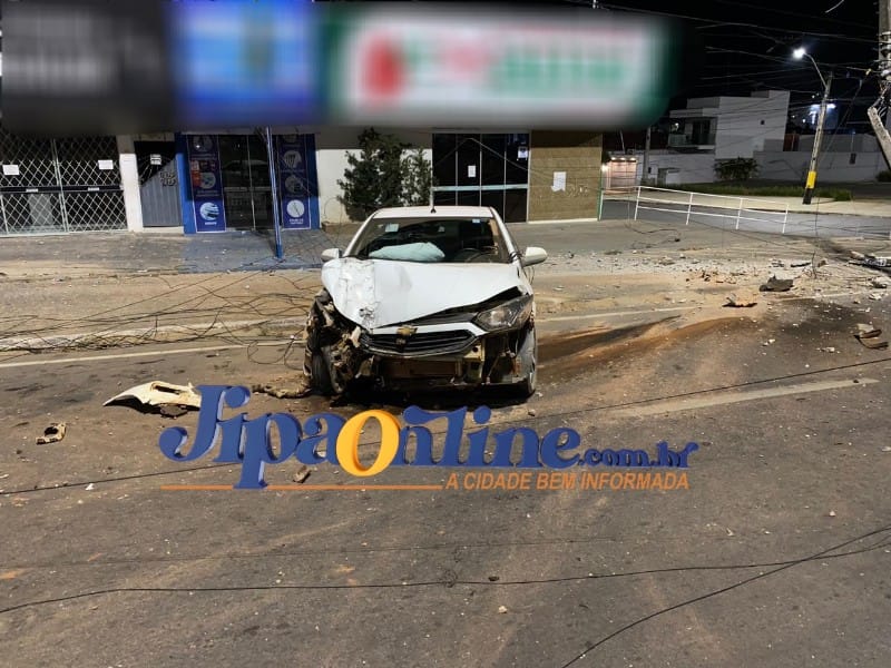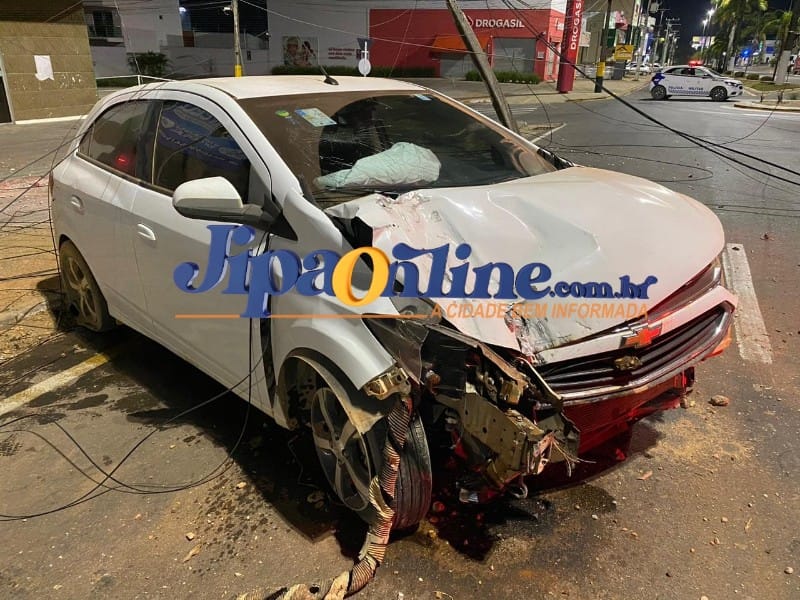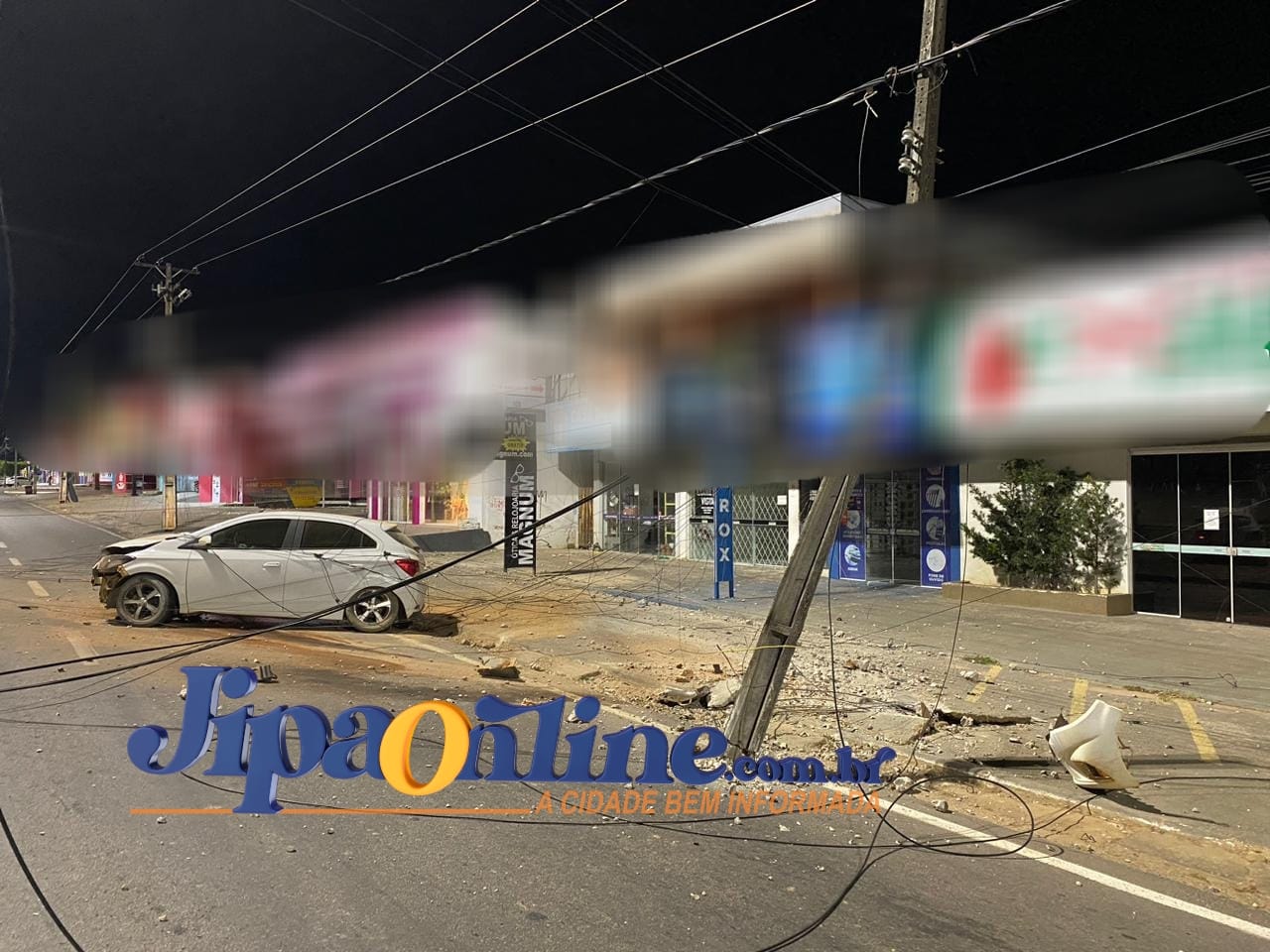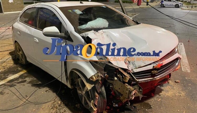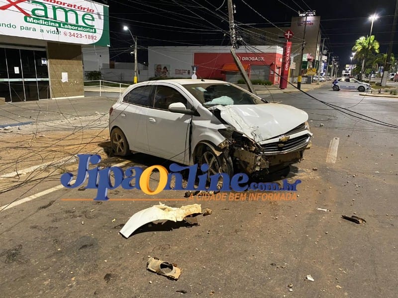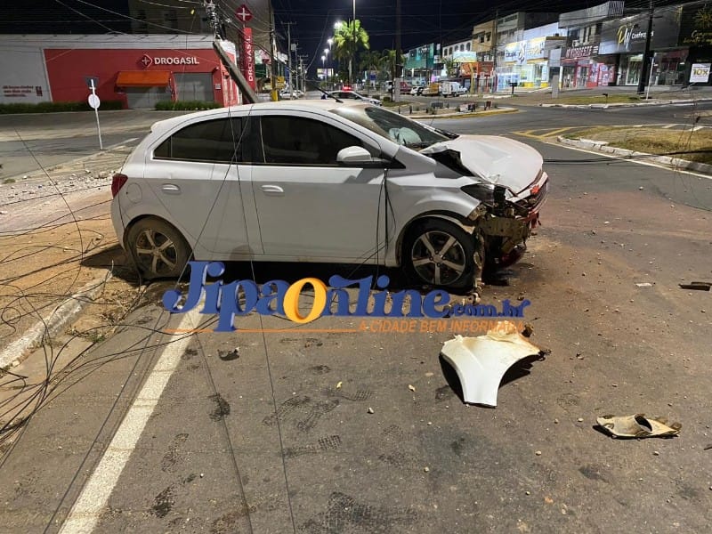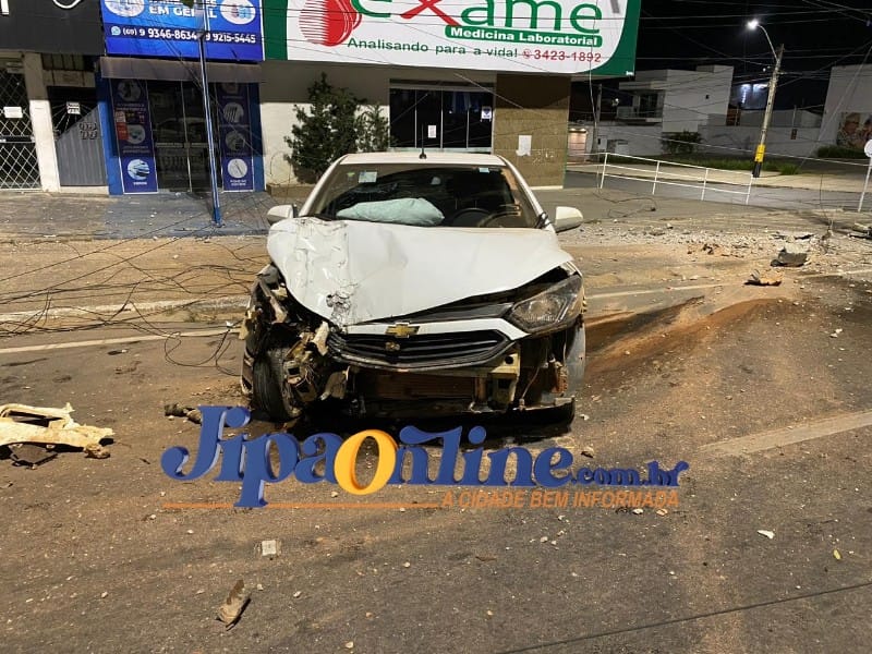 Motorista perde controle de veículo e destrói poste na Av. Marechal Rondon.