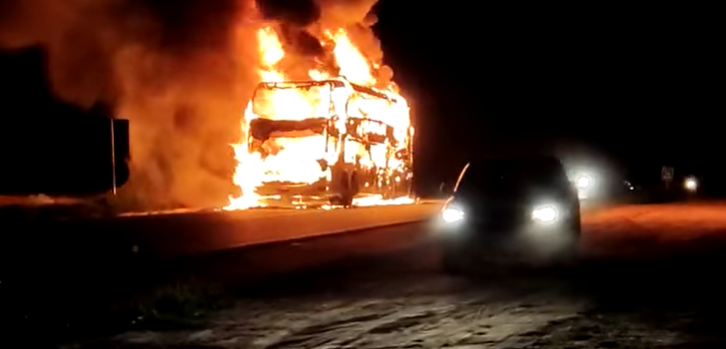 Na noite deste domingo (11), um ônibus pegou fogo na Br-364, próximo a entrada do Anel Viário de Ji-Paraná. O ônibus estava parado no local onde acontece uma manifestação e bloqueio da via por manifestantes. Informações iniciais de um passageiro, é que teria ocorrido um curto circuito no ar condicionado dando início ao incêndio. As chamas se alastraram rapidamente consumindo todo veículo. Os bombeiros foram acionados para combater as chamas e fazer o rescaldo. Agora as causas deverão ser investigadas.