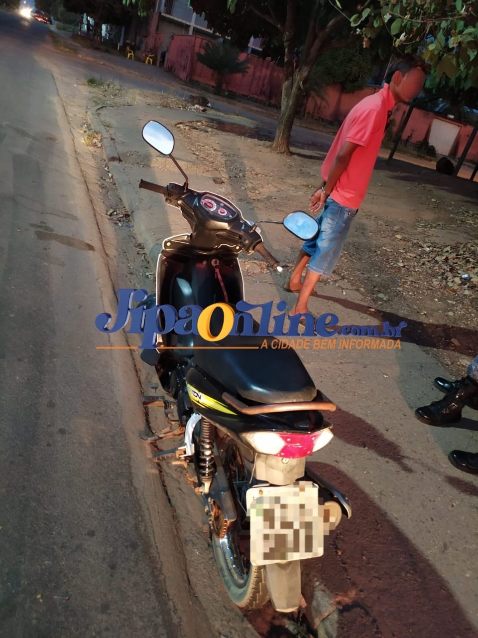 Já no início da noite a guarnição do Patamo realizava patrulhamento pela av. Governador Jorge Teixeira, segundo distrito da Cidade, quando no cruzamento da rua T-23, avistou um elemento em uma motoneta com as mesmas características do veículo furtado, nesse momento foi feito abordagem ao condutor da motoneta, ao ser feito checagem veicular foi constatado que o veículo era objeto de furto.