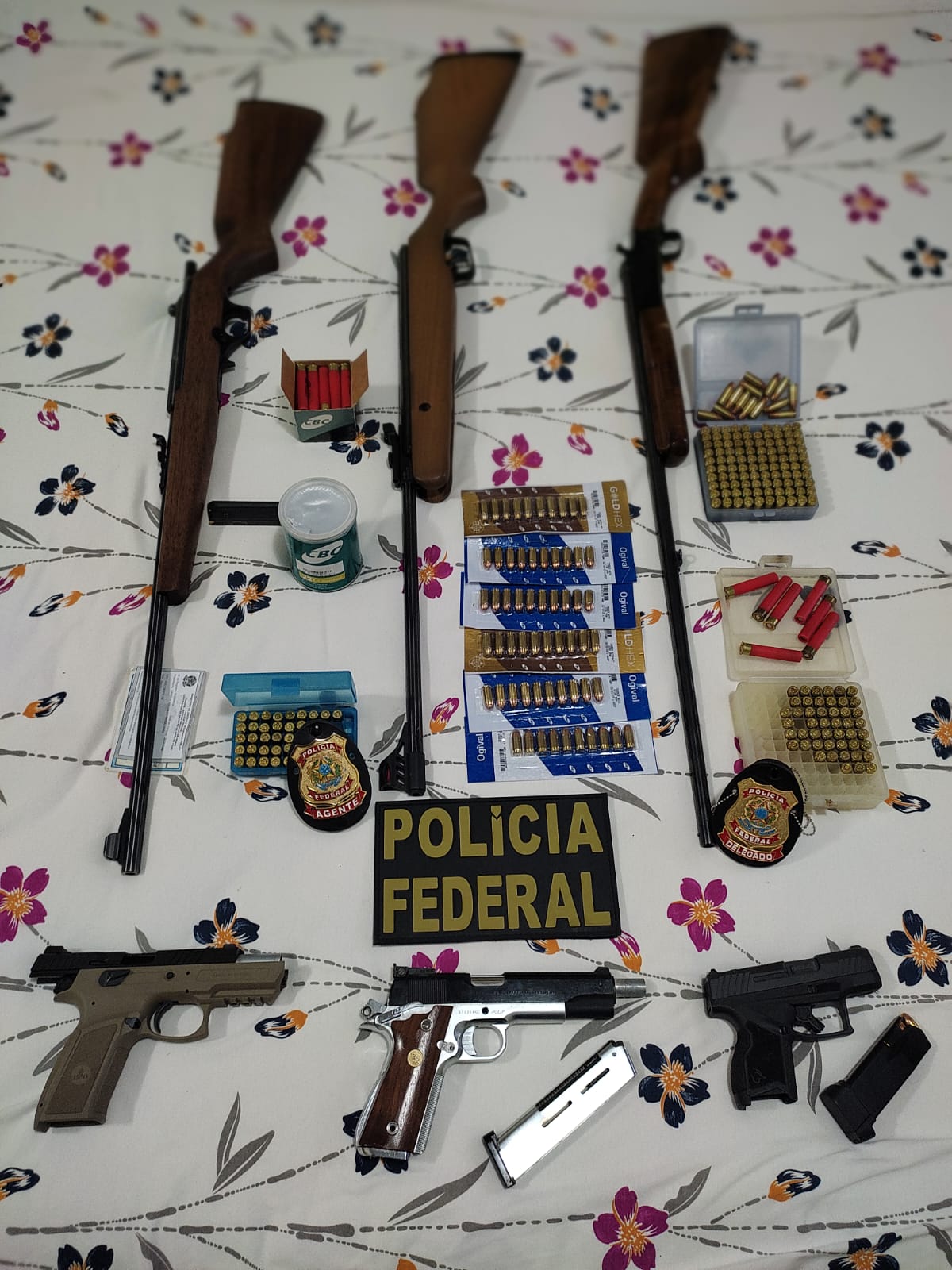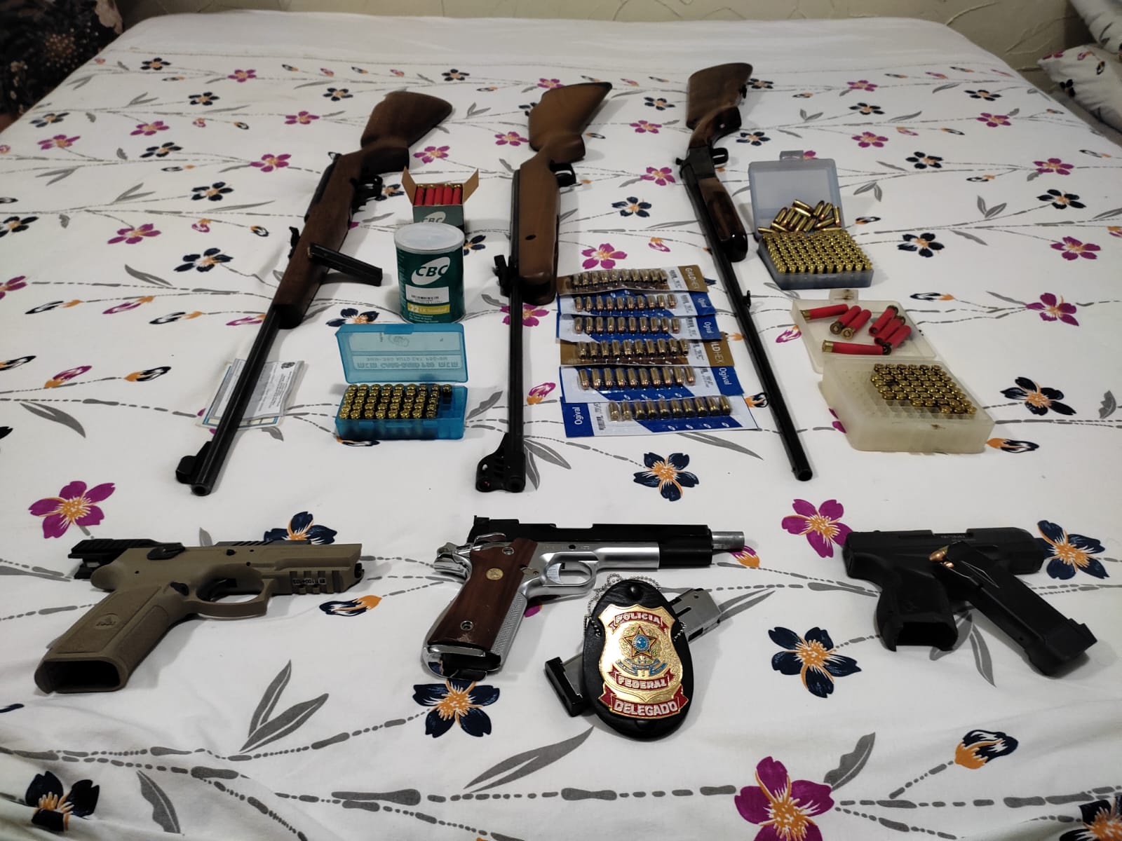 Foram apreendidas munições e armas, sendo uma de uso restrito.