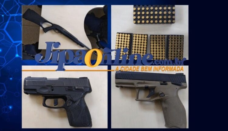 A Polícia Militar de Ji-Paraná, em apoio a oficiais de Justiça no cumprimento de um mandado de busca e apreensão, apreenderam várias munições e armas. Ao chegaram no local foi dado início às apresentações, em seguida oficiais e PM se deslocaram até a casa do empresário onde foram apreendidas munições e armas. No local Carabina/ fuzil, marca CBC, calibre.22, com dois carregadores de munição, uma PISTOLA marca TAURUS, calibre 9 MM, oxidada, com dois carregadores de munição, uma PISTOLA marca TAURUS, calibre 22, com 02 dois carregadores de munição, assim como os certificados de registro destas armas.