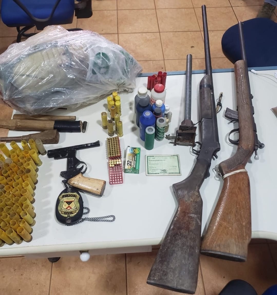Polícia Civil prende suspeito por caça ilegal e crueldade contra animais com espingardas e centenas de munições.