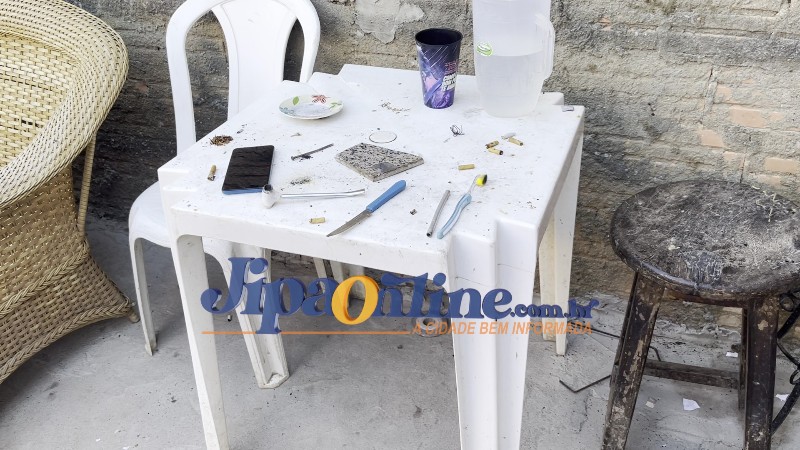 Durante a busca na residência, os policiais encontraram várias pessoas, incluindo um indivíduo identificado como Diego, suspeito de envolvimento com o tráfico de drogas. Foram apreendidos diversos objetos de procedência duvidosa, munição de arma de fogo, além de algumas pedras de crack.