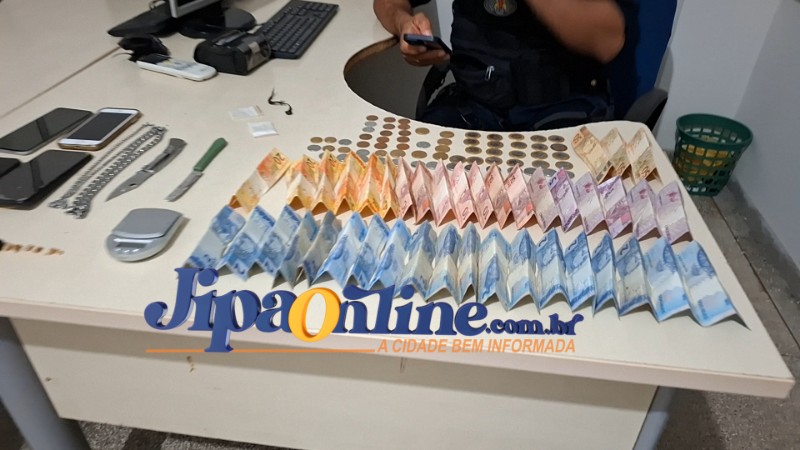 O suspeito foi alcançado e abordado. Em sua posse, os policiais encontraram R$ 408,00 em espécie. Dentro do imóvel, outro indivíduo identificado como Paulo Vitor também foi detido. Segundo a denúncia, ele auxiliava nas vendas de drogas.