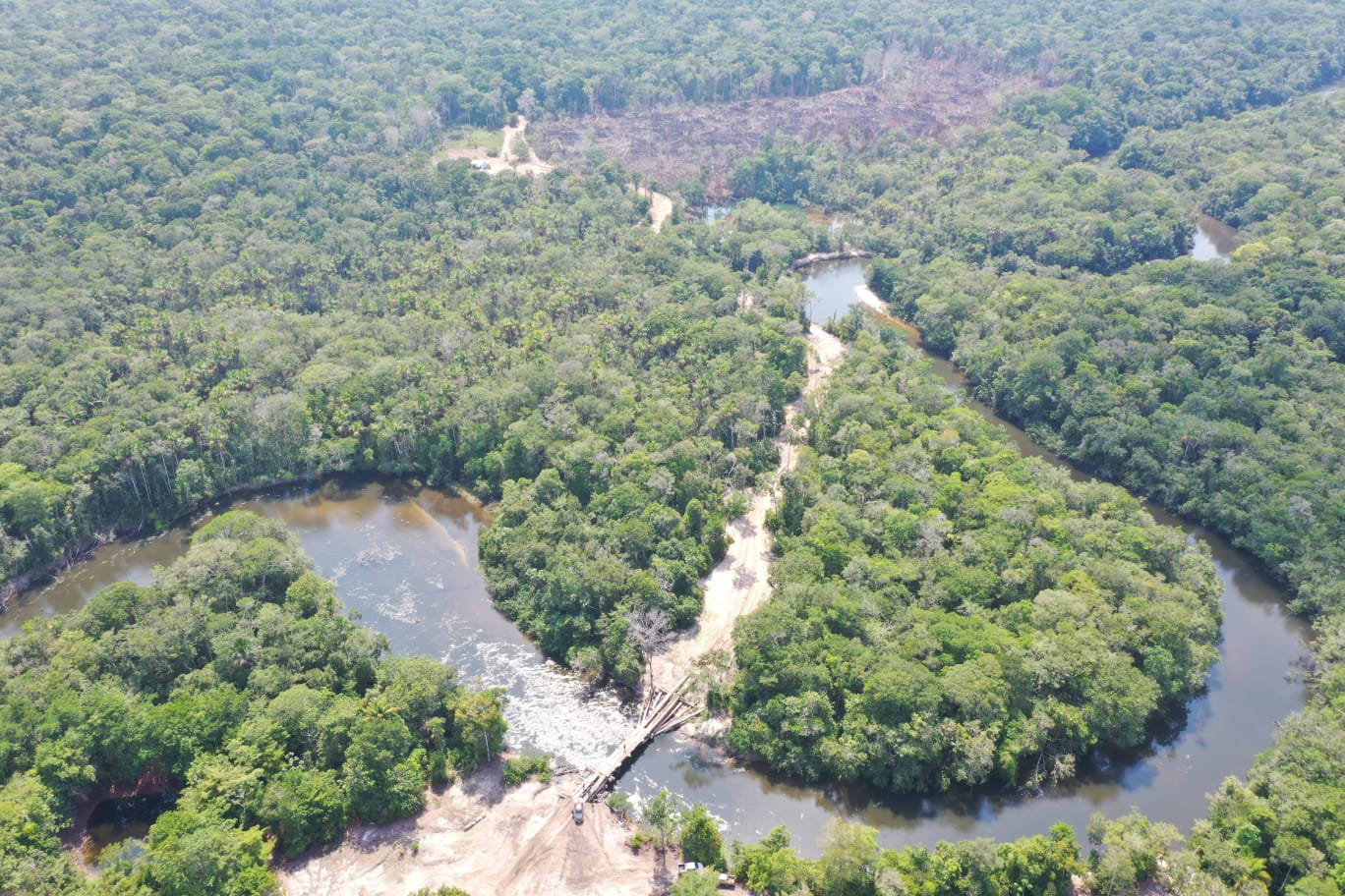 Na operação, que contou com apoio do IBAMA, foi destruída uma grande ponte irregular que facilitava a extração irregular de madeira da TI