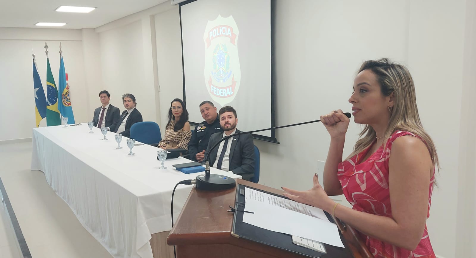 O Delegado de Polícia Federal, Adolfo Humberto Alves Barbalho, assumiu a chefia da Delegacia em Ji Paraná, nesta quinta-feira, 6/7. A solenidade aconteceu no auditório do Ministério Público de Rondônia, com a presença da Superintendente Regional em Rondônia, Larissa Magalhães Nascimento, chefias, autoridades e servidores regionais. Adolfo tomou posse com o desafio de combater a criminalidade, de forma célere, nos 18 municípios que compõem a circunscrição de Ji Paraná. “Assumo o compromisso de liderar com ética, dedicação, empatia e responsabilidade na proteção da sociedade. Para isso conto com uma equipe vocacionada, além do apoio de órgãos parceiros”, ressaltou o chefe de Ji Paraná.