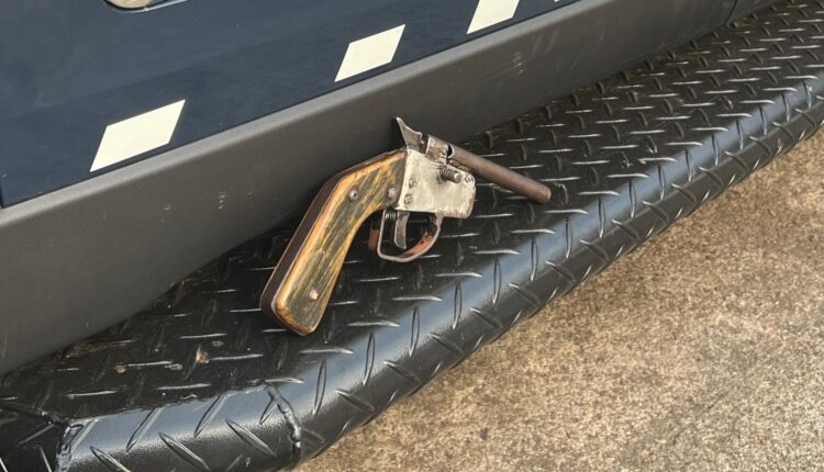 Agentes da Polícia Rodoviária Federal (PRF) em Rondônia, na manhã de hoje (18), foram comunicados, por dois pedestres, que havia um homem armado nas dependências de um posto de gasolina localizado ao lado da Superintendência da PRF, no município de Porto Velho/RO. De imediato, os policiais se deslocaram até o estabelecimento e se depararam com um rapaz, com as mesmas características físicas e vestimentas mencionadas, saindo do banheiro. Realizada a verbalização e a busca pessoal, foi encontrado um armamento, de fabricação caseira, com duas munições calibre .38. O artefato encontrava-se em condições de disparo.