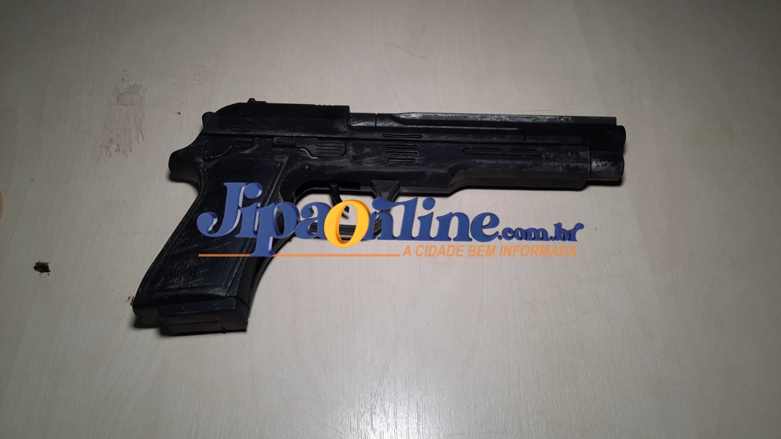 Na noite desta quinta-feira a central de operações da polícia militar recebeu denúncia que um rapaz estaria armado em um comercio na T-23 no segundo distrito da Cidade. Quando os policiais chegaram o elemento tentou esconder o simulacro mais foi detido e conduzido para UNISP.