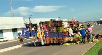 Na manhã desta quinta-feira (15) por volta das 05 horas, um acidente foi registrado na Br-364, próximo ao semáforo que dá acesso a Av. Aracaju, em Ji-Paraná. Um caminhão que seguia carregado de hortifruti sentido viaduto acabou tomando na pista. Segundo informações, o tombamento aconteceu devido a carga ter pendido para o lado direito tombando o veículo. Apesar do susto, o motorista não se feriu. Agora é fazer o recolhimento da carga e destombar.
