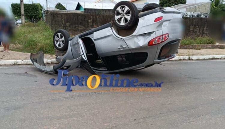 Veículo invade preferencial e causa capotamento na Manoel Franco com T-20.