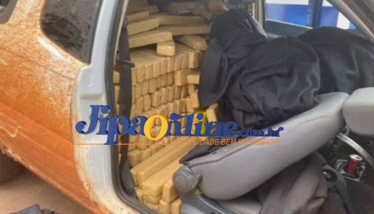 O motorista que conduzia um veículo Fiat Strada abandonou o carro antes da abordagem policial na MS-422, a 141 quilômetros de Campo Grande (MS). O carro estava com 570 kg de maconha nos bancos e carroceria.