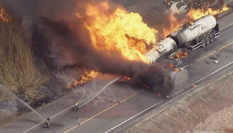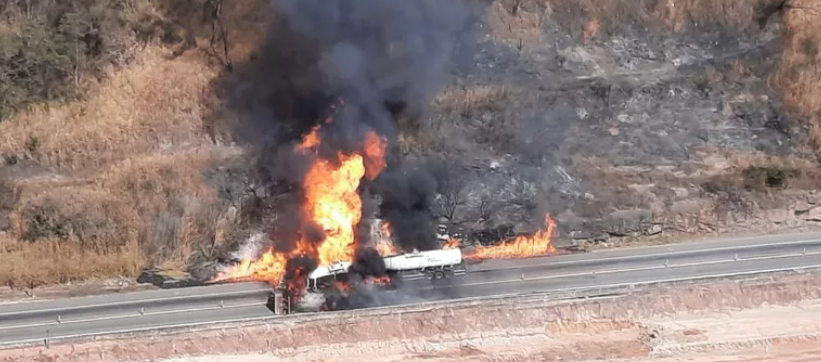 Uma carreta bitrem – carregada com produto inflamável – e um caminhão bateram de frente no km 354 da BR-262, em Betim, na Grande BH, no fim da manhã desta sexta-feira (15).